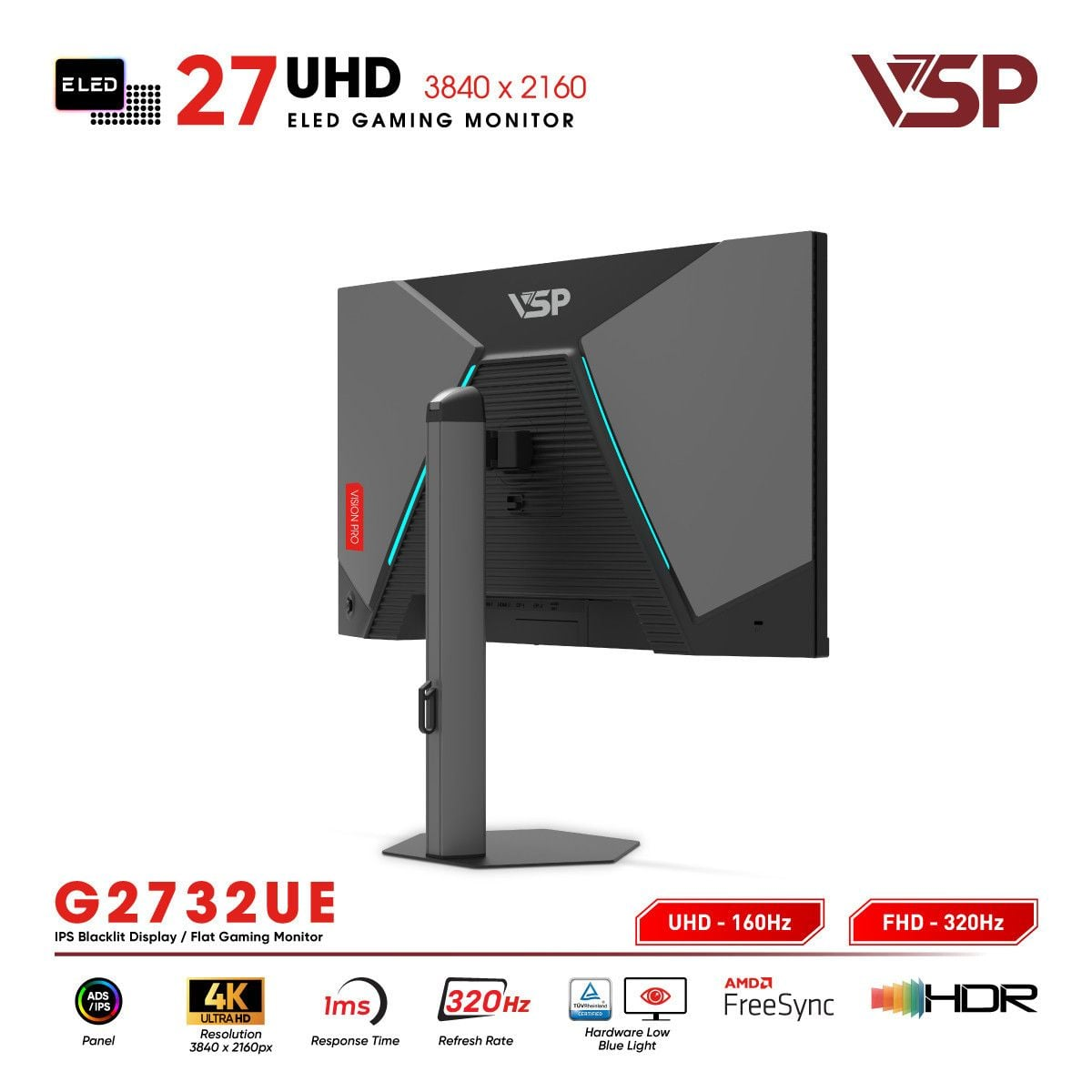 Màn hình máy tính LCD VSP G2732UE 27"4K UHD 3840x2160| IPS| 160Hz| 1ms