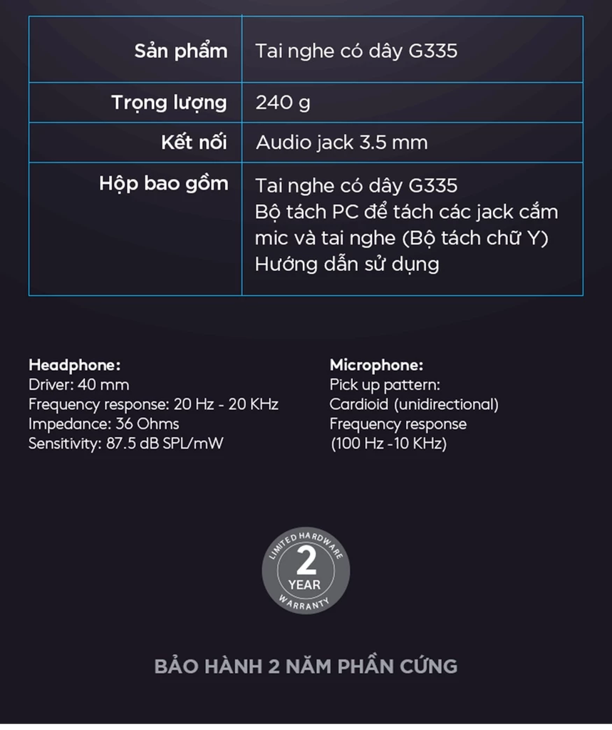 Tai Nghe Gaming Logitech G335 (chụp tai có dây Over-ear)