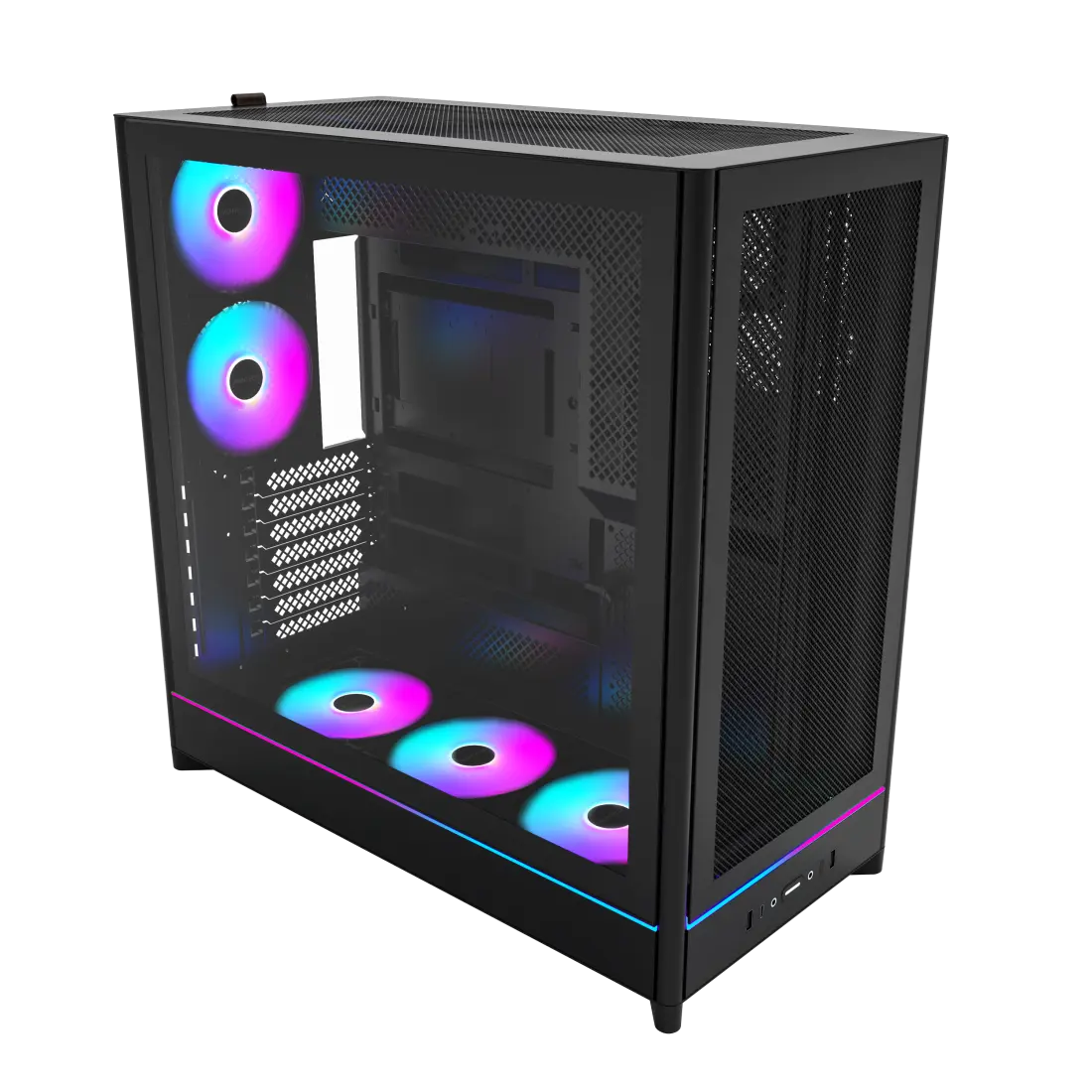 | Chất liệu | Thép kết hợp với kính cường lực. Sẵn 5 fan 120mm ARGB. |